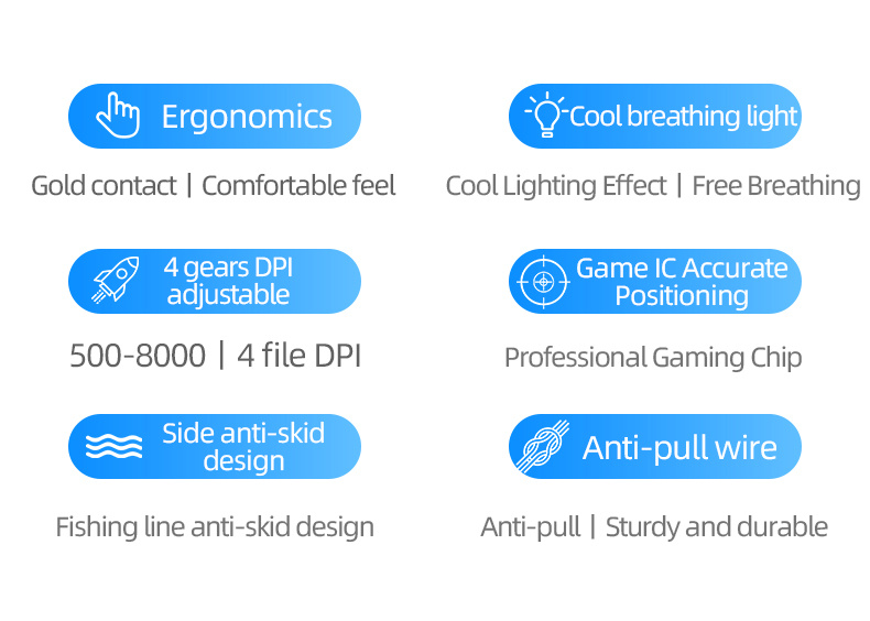 500-8000 Four-stage DPI Can Be Switched Freely, Responsive, Smooth Operation, Accurate Positioning Without Frame Loss During Fast Movement.